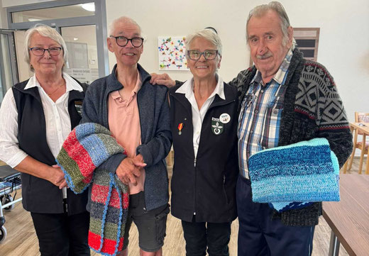 Im Paul-Wilhelm-Kraul-Heim in Velpke übergaben Christa Lathan und Silvia Gartung insgesamt 15 selbstgestrickte Decken an die Bewohnerinnen und Bewohner. Bereits beim ersten Besuch im April waren dort 21 Decken verteilt worden. Die Freude über den erneuten Besuch war groß – der Bedarf ist nach wie vor hoch, und jede Decke wird mit Dankbarkeit angenommen.